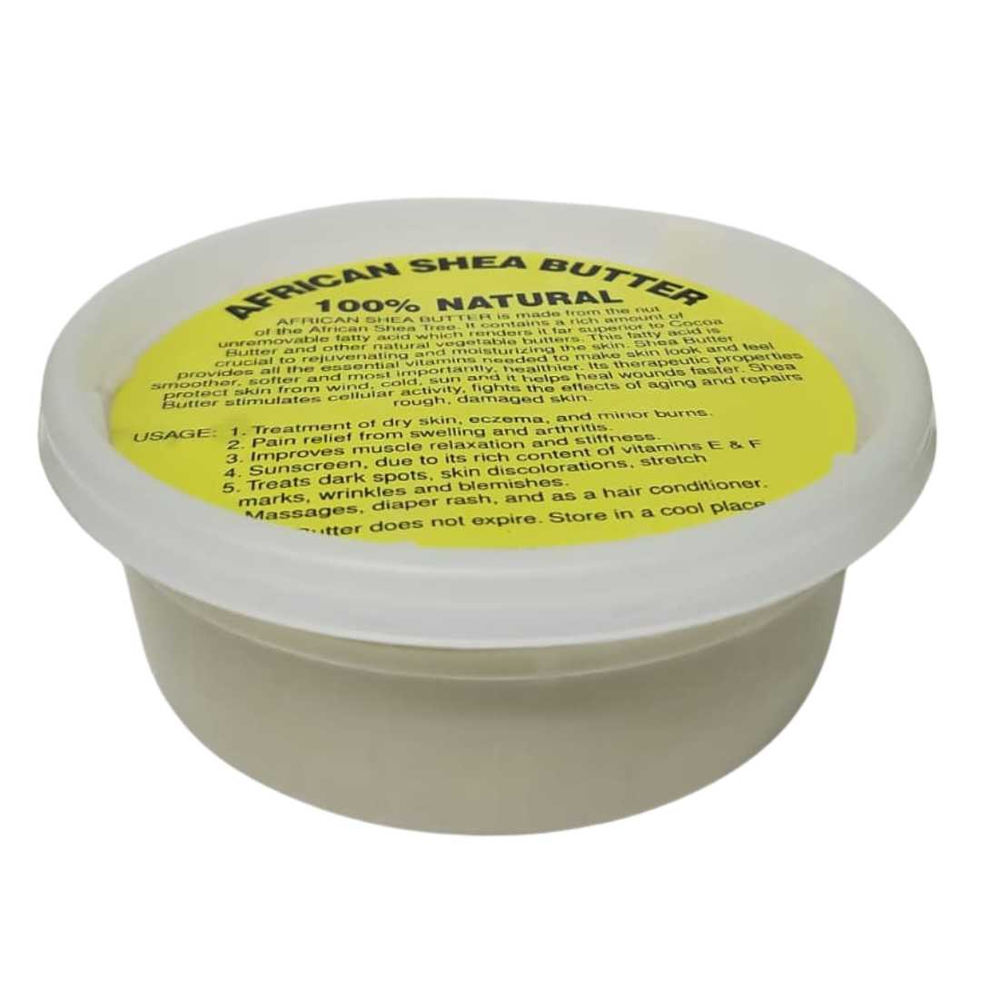 This 100% Natural African Shea Butter is a rich, creamy moisturizer made from the pure nut of the African shea tree. Known for its exceptional healing and nourishing properties, this unrefined butter helps soothe dry skin, soften rough patches, and improve elasticity. Packed with natural vitamins and fatty acids, it supports skin repair, reduces the appearance of stretch marks, dark spots, and blemishes, and helps calm irritation from eczema and minor burns. It is also excellent as a hair conditioner, scalp moisturizer, or daily massage butter. Pure, versatile, and deeply hydrating, this shea butter brings the timeless beauty traditions of Africa straight to your home.