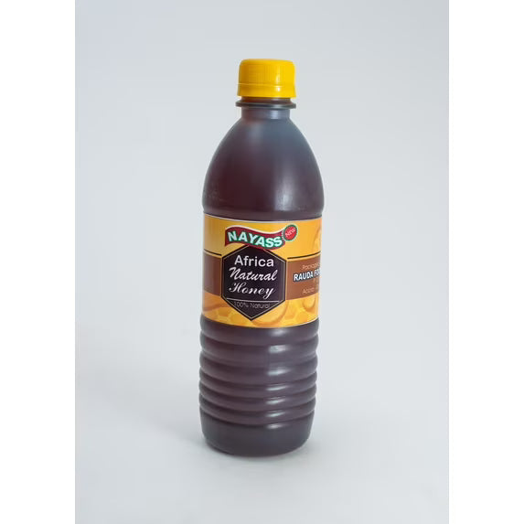 Nayass Africa Natural Honey is a pure, 100% natural honey sourced from the rich floral regions of Africa. This premium-quality honey has a deep golden-brown color and a smooth, rich texture that captures the authentic taste of nature. Perfect for sweetening beverages, cooking, baking, or as a natural health remedy, it retains all its natural enzymes and nutrients for maximum wellness benefits. Packaged in a durable ribbed bottle with a secure yellow cap, Nayass Honey brings the wholesome sweetness of Africa straight to your table.