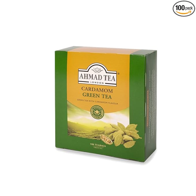 Ahmad Tea Green Tea, Cardamom Teabags, 100 ct (Pack of 1) - Caffeinated & Sugar-Free