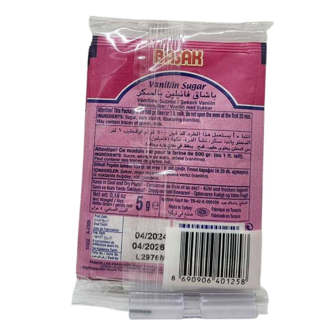 Başak Vanillin Sugar is the secret ingredient that turns everyday baking into a celebration of flavor. Packaged in a vibrant pink sachet, this sweet blend delivers the familiar and comforting aroma of vanilla, perfect for cakes, cookies, pastries, puddings, and more. The packet showcases a fluffy white cake topped with fresh strawberries, hinting at the delicious results you can achieve. Whether you're enhancing traditional desserts or elevating creative treats, Başak Vanillin Sugar adds that irresistible, bakery-fresh fragrance your family will love.