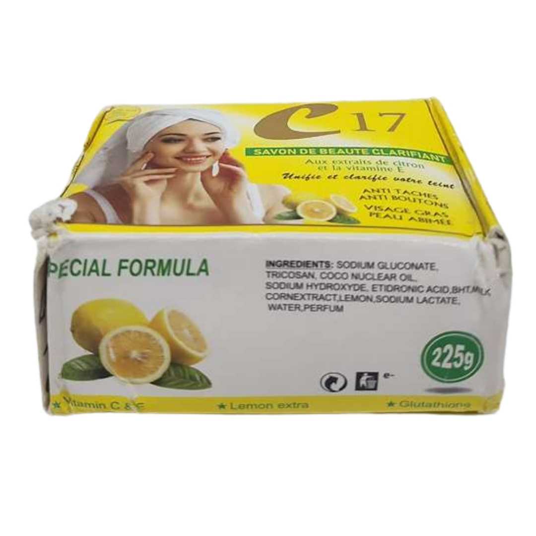 The C17 Clarifying Beauty Soap is a skincare bar enriched with lemon extract and vitamin E, formulated to brighten, clarify, and smooth the complexion. Ideal for oily and damaged skin, this soap helps reduce dark spots, acne marks, and blemishes, leaving your skin visibly clearer and refreshed. Its natural citrus-based formula gently exfoliates dead skin cells while vitamin E nourishes and protects your skin’s natural barrier. Use it daily for a radiant, even-toned, and healthy-looking glow.