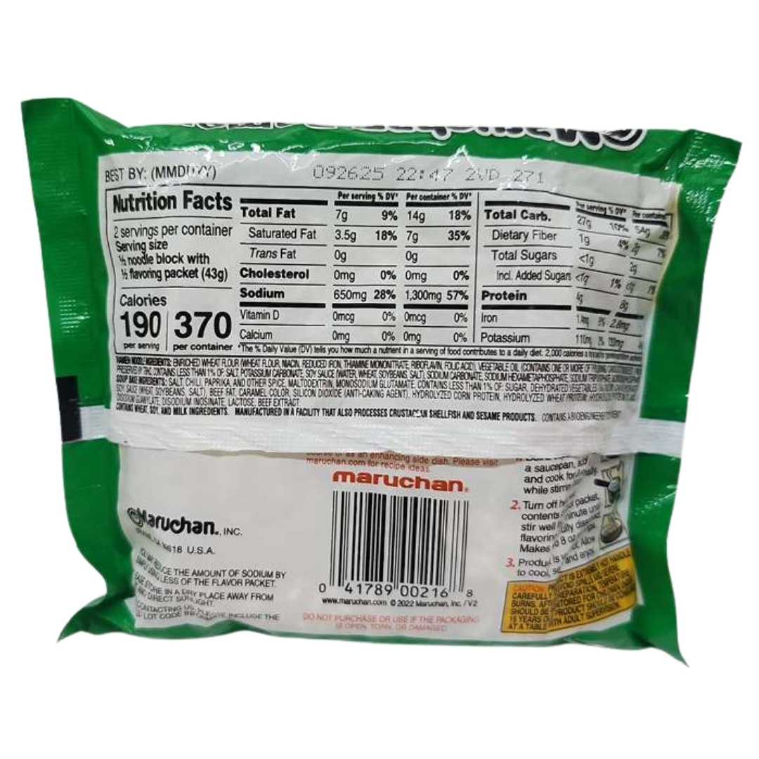 Maruchan Ramen Noodle Soup Chili Flavor brings bold, spicy taste to your mealtime in just 3 minutes. Each 3 oz pack delivers a zesty chili-infused broth paired with perfectly cooked ramen noodles for a flavorful and satisfying experience. Enjoy it as a quick lunch, dinner, or snack, or customize your bowl with vegetables, eggs, or meat for extra flavor. This chili-flavored ramen offers the ideal balance of heat and heartiness for lovers of spicy comfort food.