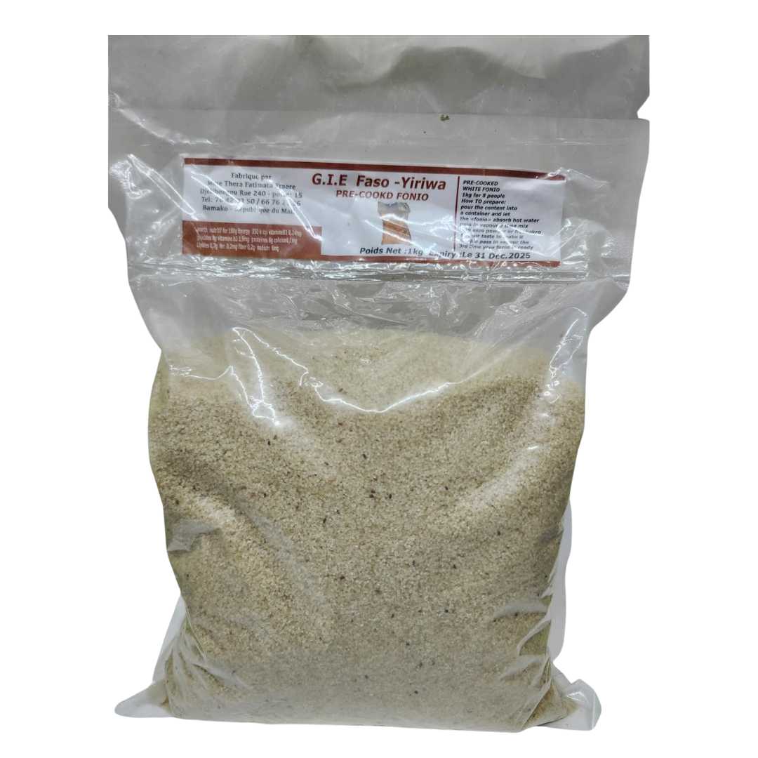 G.I.E Faso Yiriwa Pre-Cooked White Fonio is a traditional West African grain that has been carefully cleaned and pre-cooked for quick preparation. Sourced and produced in West Africa, this fonio is finely textured, light, and easy to prepare, making it ideal for everyday meals.